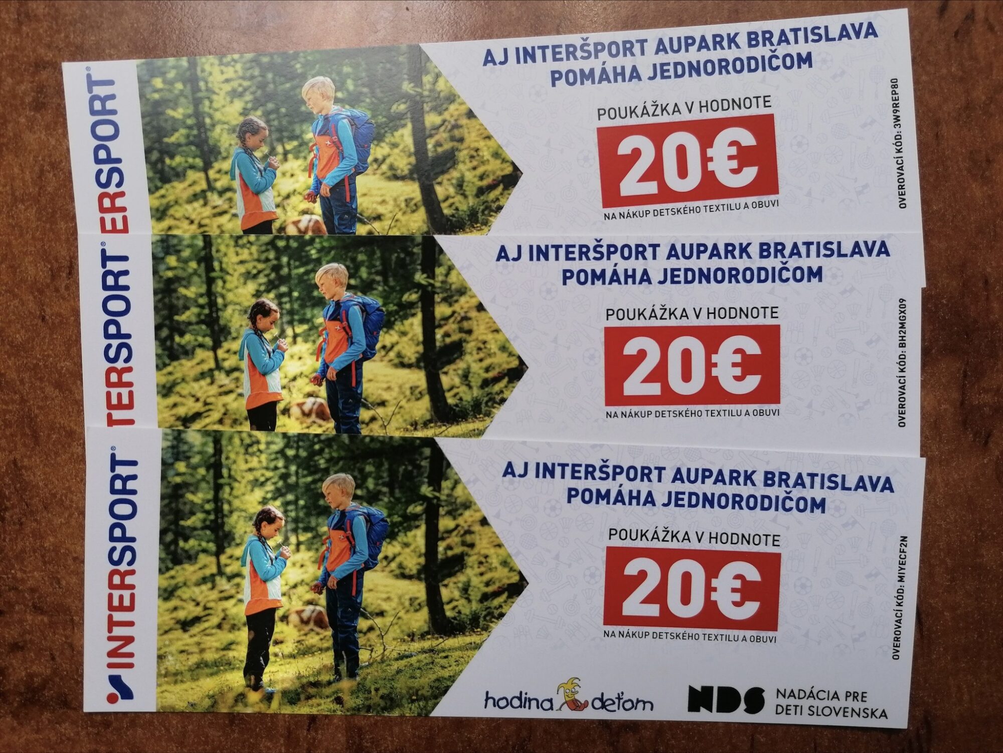 Vďaka Intersport Aupark Bratislava podporíme 10 detí poukážkami v hodnote 20 €.